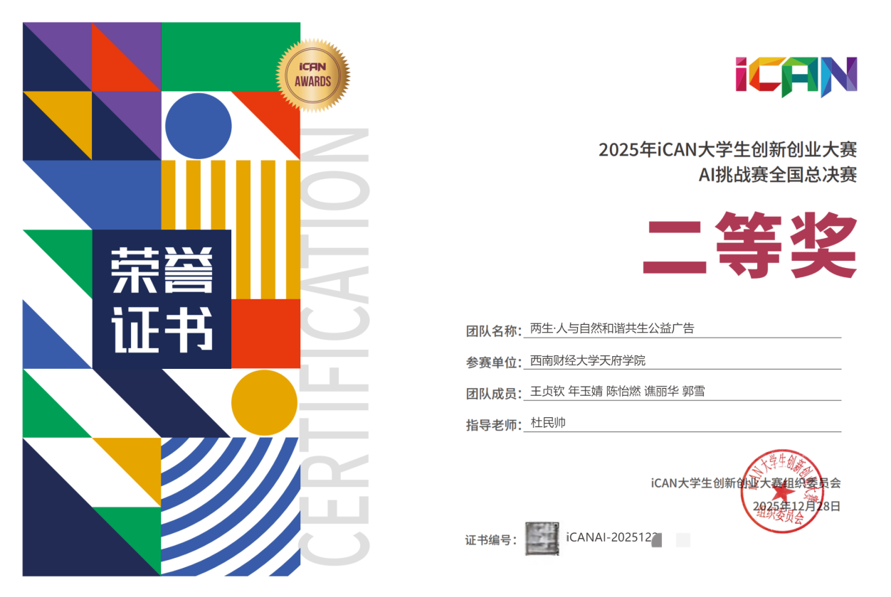 賽事通過多環(huán)節(jié)綜合評定,全面考察選手的創(chuàng)新思維、AI技術(shù)應(yīng)用與團隊協(xié)作能力。天府學(xué)子憑借扎實的創(chuàng)新素養(yǎng)與出色的實踐能力,在全國898支入圍作品的激烈角逐中脫穎而出,王貞欽團隊、侯思晗團隊、蔡熙林團隊?wèi){借優(yōu)異表現(xiàn)斬獲3項全國二等獎,文藝潔團隊、劉美伶團隊榮獲2項全國三等獎。