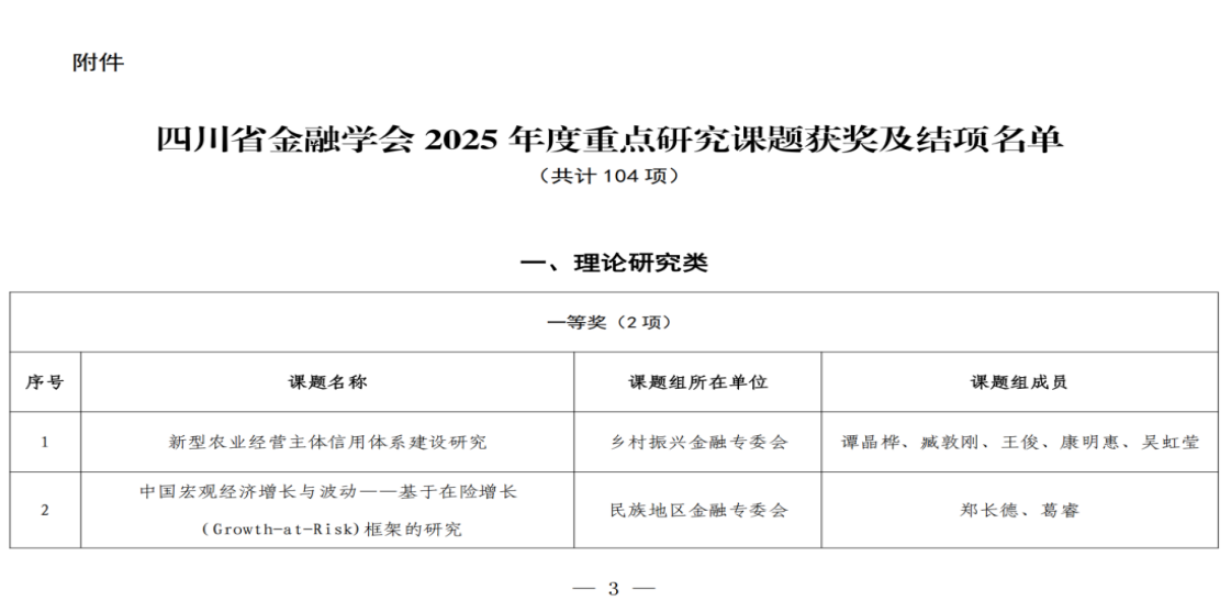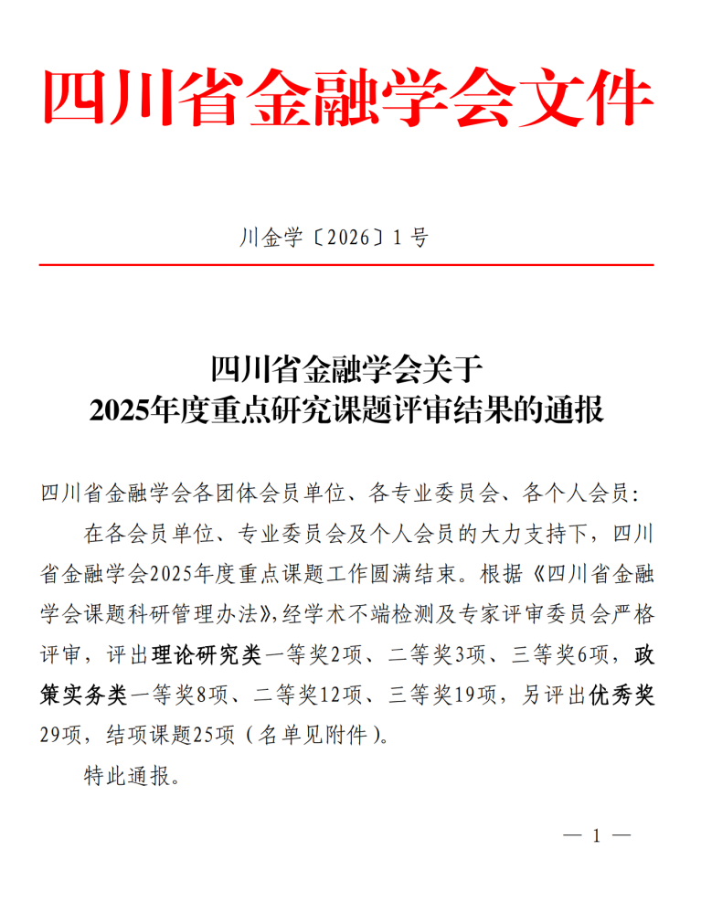 四川省金融學會2025年重點研究課題評審結(jié)果通報文件