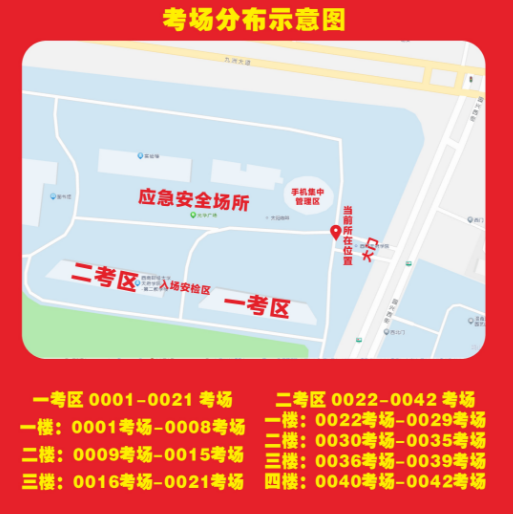 考區(qū)(樓棟)實行封閉管理,所有考生進(jìn)入考區(qū)(樓棟)一律通過入場安檢區(qū)進(jìn)入,其它區(qū)域不開放。