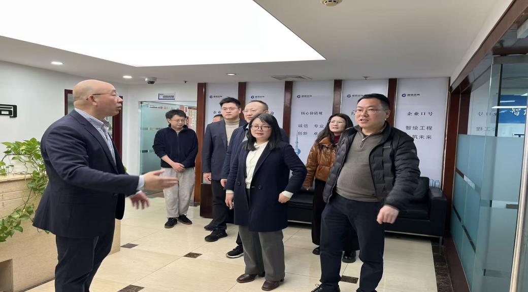 調(diào)研伊始,在分公司領(lǐng)導陪同下,學院代表參觀了公司辦公環(huán)境、項目成果展示墻及主要功能區(qū)域,詳細了解了建銀咨詢在工程項目管理、造價咨詢、政府專項債服務(wù)等領(lǐng)域的典型案例與創(chuàng)新成果,并對公司的專業(yè)實力與企業(yè)文化留下了深刻印象。
