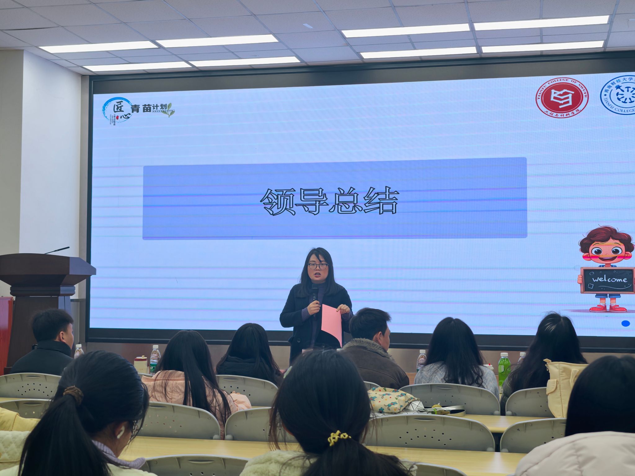 會議尾聲,范香進(jìn)行了總結(jié)。她回顧了2025年秋季學(xué)期匠心·青苗計劃實(shí)施的整體情況,并對任務(wù)包匯報的內(nèi)容、形式以及取得的成效,給予了肯定。她指出,學(xué)院大改班自啟動以來,始終錨定“厚基礎(chǔ)、強(qiáng)交叉、能創(chuàng)新”的目標(biāo),把真實(shí)項目引入課堂,把課堂搬到產(chǎn)業(yè)一線,把AI融入學(xué)習(xí)全過程。五個月前,同學(xué)們接過三大任務(wù)包——“建筑煥新”“結(jié)構(gòu)設(shè)計”“AI賦能科研”,像接過三把鑰匙,開啟了通往未來工程師的大門。今天,同學(xué)們帶著鑰匙回來,打開的是自信、是成長、更是無限可能。