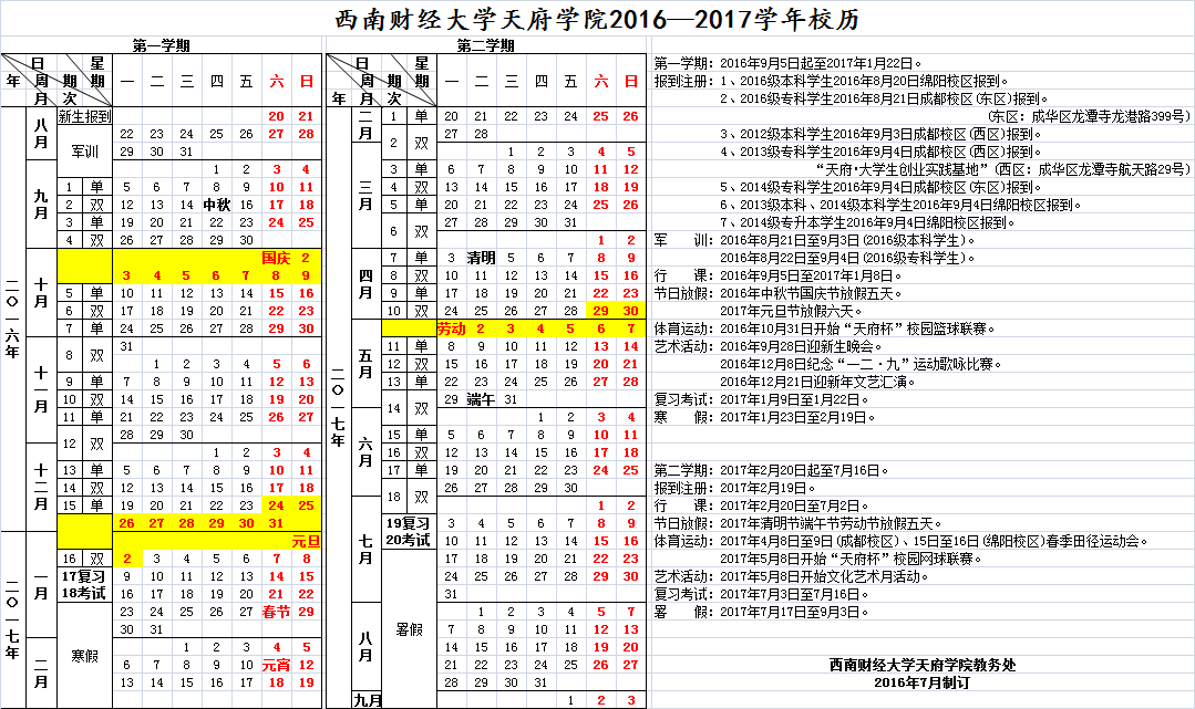 2016-2017學年校歷