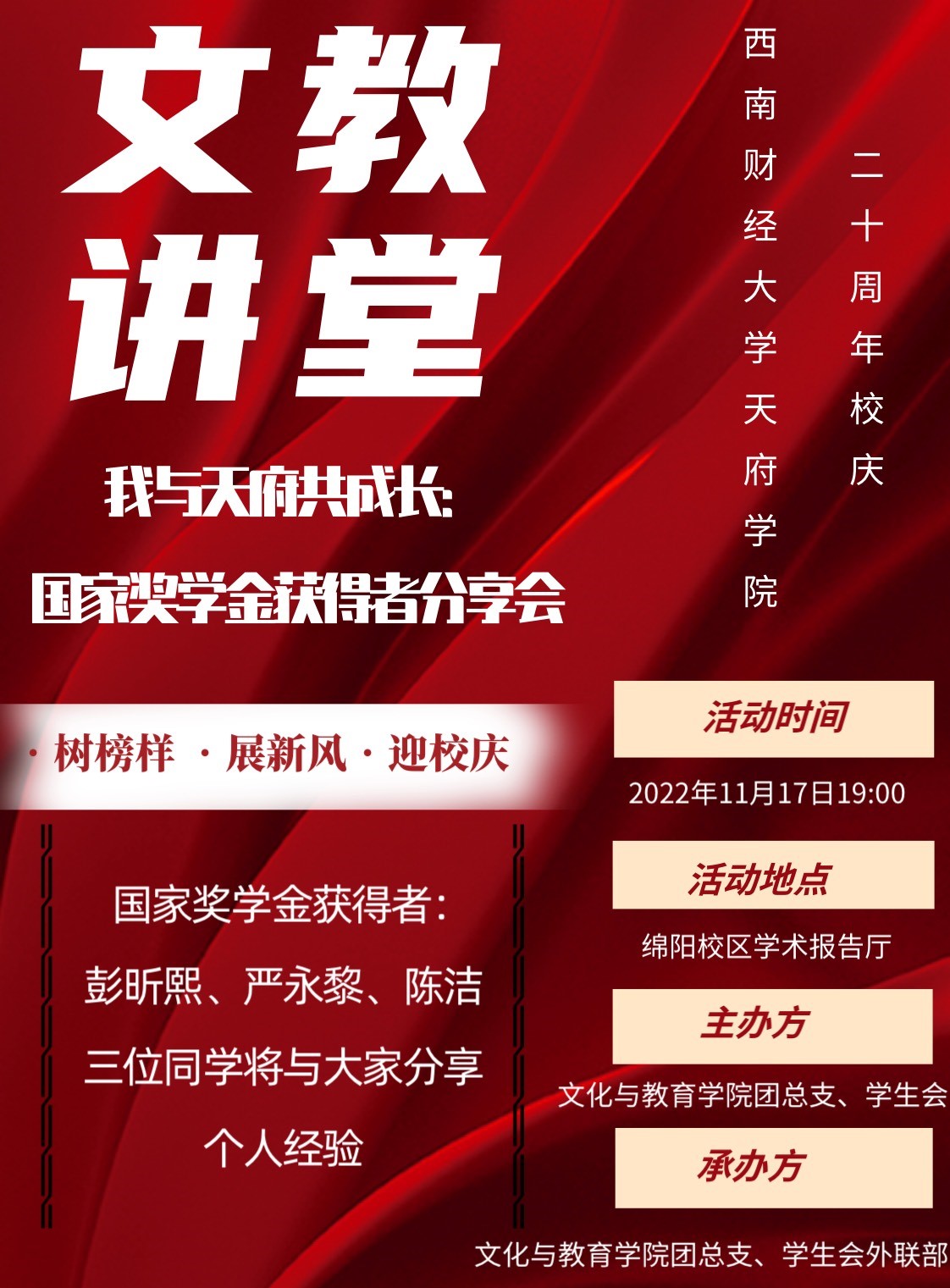 活動名稱:“我與天府共成長”國家獎學(xué)金獲得者分享會