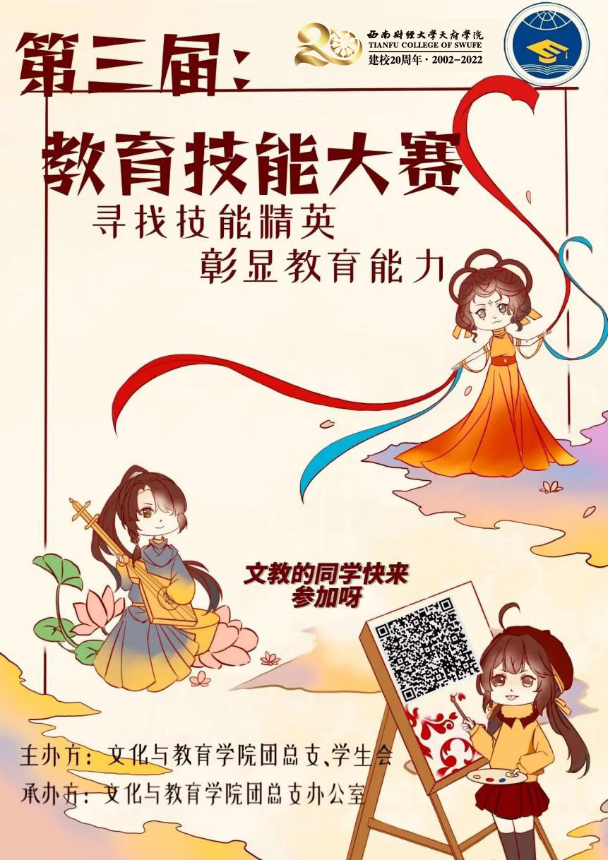 活動簡介:為進一步提高學生教育教學技能水平,豐富學生的課余生活;為學生提供更優(yōu)質(zhì)的藝術(shù)與教育展示平臺,努力營造和諧向上、健康文明的校園文化氛圍和優(yōu)質(zhì)的教育環(huán)境;促進學生藝術(shù)與教育共同發(fā)展,挖掘綜合性素質(zhì)人才,促進校園文化的進一步繁榮和發(fā)展,不斷提升學生的綜合素質(zhì)、藝術(shù)修養(yǎng)和創(chuàng)新能力,文化與教育學院團總支、學生將于本學期舉辦“教育技能大賽”。參與本次活動的同學可選取美術(shù)(手工)、三筆字、舞蹈、鋼琴、繪本閱讀、聲樂、教學試講這七種參與方式。我們分為初賽、決賽以及晚會的形式呈現(xiàn)。我們初賽以小程序的方式進行選作品,同學們投票比例占20%,老師評選占比80%。決賽則是分項目在教學樓分開舉辦,其中美術(shù)手工三筆字我們將在商業(yè)街進行擺點,讓同學們進行投票,同時擴大了我們的宣傳力度,老師通過同學們的表現(xiàn)進行打分,決出我們的優(yōu)秀節(jié)目。最后在我們的學術(shù)報告廳以晚會的形式呈現(xiàn)出來。